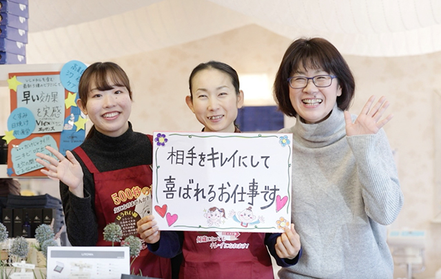 相手をきれいにして喜んでもらえる、自分が薦めた方法でお客様のお肌がきれいになると「やった~!」と達成感を感じられる!